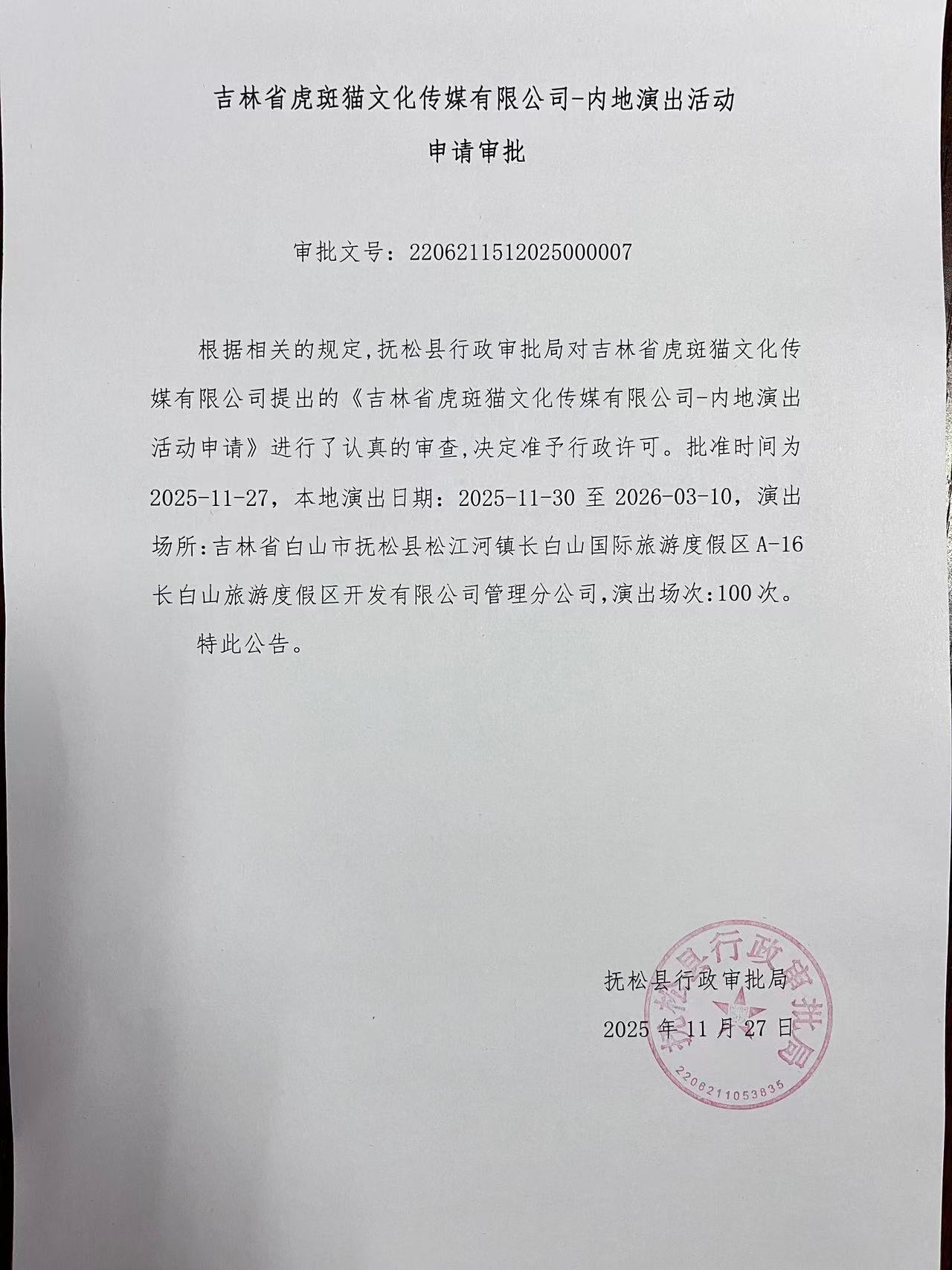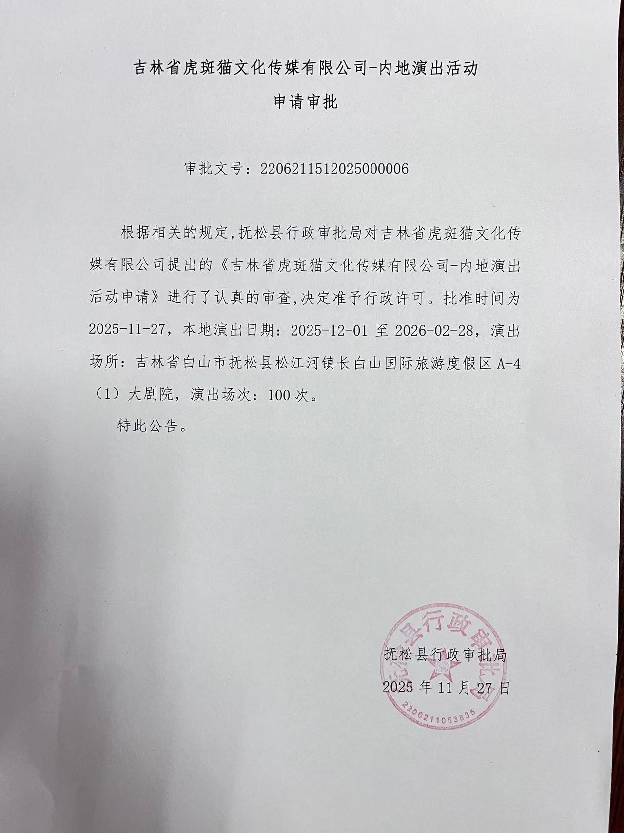 吉林省虎斑猫文化传媒有限公司—内地演出活动申请审批