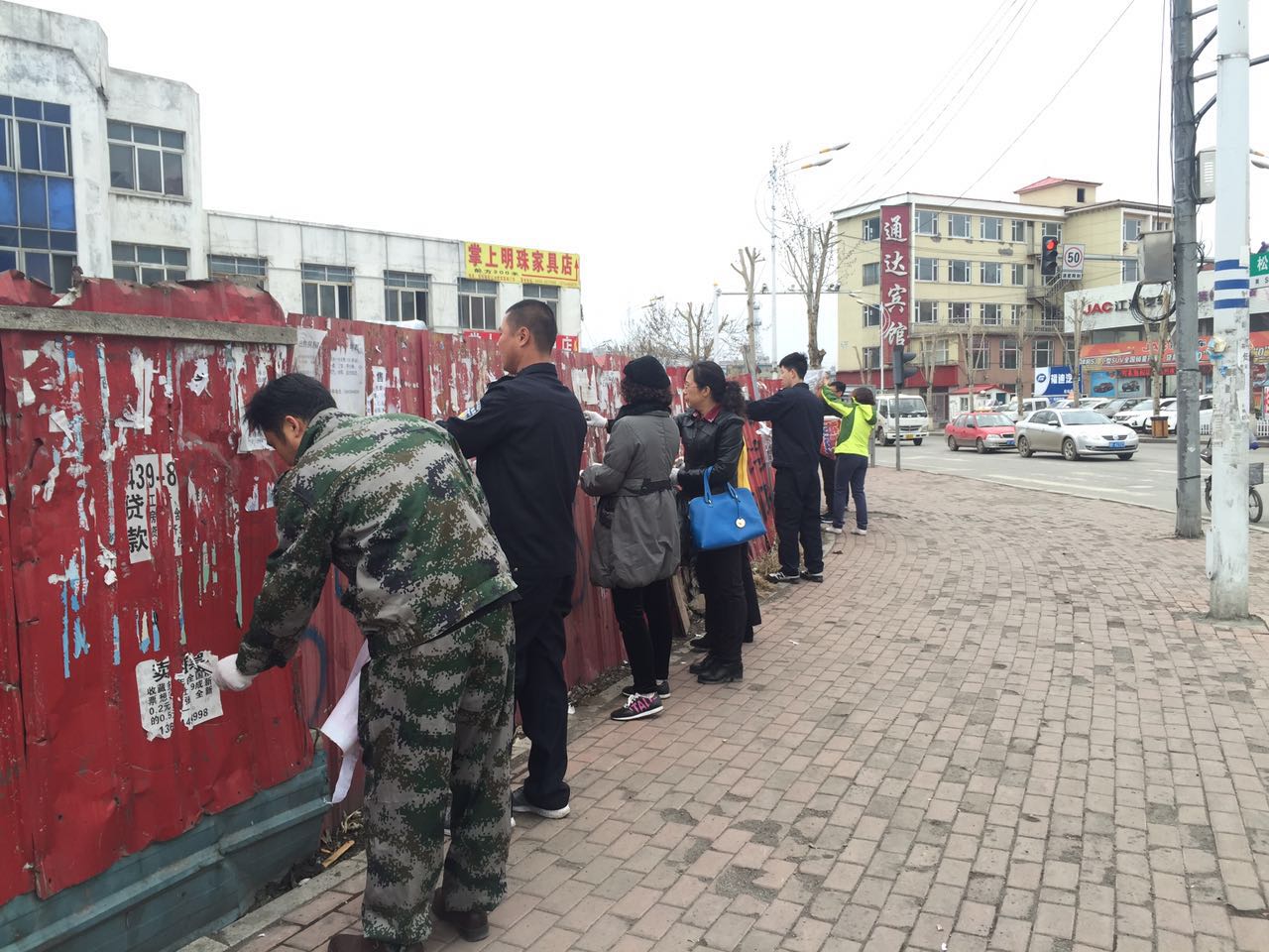4月15日,抚松镇政府联合县城市管理综合执法局,组织80余人的精干力量,分成3个工作组,对抚松镇内的抚松大街、香江路、参乡路等主干道及周边街道的环境卫生进行专项清理。活动中,大家手拿塑料袋、铲子、夹子等工具,对沿街墙面、电线杆、变电箱上的小广告和违章广告牌进行了认真细致的清理。针对卫生死角和难清理的地点,镇环卫处出动清洗车辆配合清理。尽管春寒料峭,时而蒙蒙细雨,可是大家依旧干劲十足,场面热火朝天。