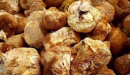 猴头菇,又叫猴头菌,只因外形酷似猴头而得名。孢子透明无色,表面光滑,呈球形或近似球形,大小约6.5-7.5µ;m×5×5.5。菌丝细胞壁薄,具横隔,有锁状联合。菌丝直径为10-20。这种齿菌科的菌类,菌伞表面长有毛茸状肉刺,长约1~3厘米,它的子实体圆而厚,新鲜时白色,干后由浅黄至浅褐色,基部狭窄或略有短柄,上部膨大,直径3.5~10厘米,远远望去似金丝猴头,故称“猴头菇”,又像刺猬,故又有“刺猬菌”之称。猴蘑,猴头,猴菇,是中国传统的名贵菜肴,肉嫩、味香、鲜美可口。是四大名菜(猴头、熊掌、燕窝、鱼翅)之一。有“山珍猴头、海味鱼翅”之称。
