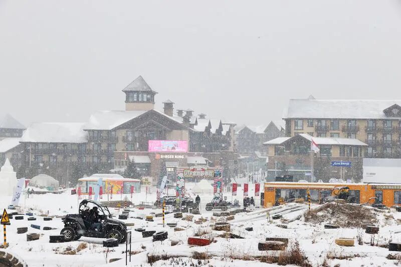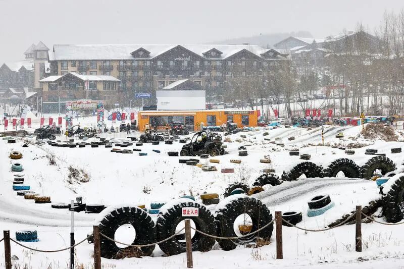 冬日的长白山华美胜地度假区被皑皑白雪覆盖,开阔雪场上引擎声阵阵,游客们驾乘雪地UTV(全地形车)疾驰穿梭,在雪沫飞溅的刺激与风驰电掣的极致体验中,尽享北国冰雪的独特乐趣。