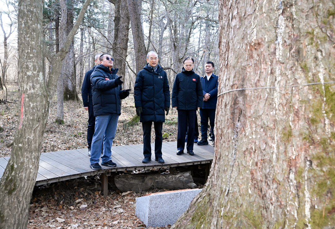 调研中,黄强指出,吉林吉林,吉祥森林。生态是吉林的根本,森林是吉林的标志,绿色是吉林的底色。要爱护森林、敬畏森林,深入学习、大力宣传、认真落实森林法和古树名木保护条例,全面普查省内古树名木,建立档案、挂牌管理,用更严格的措施、更严格的执法保护森林。要深入挖掘古树名木历史和文化价值,促进古树名木资源与生态旅游融合发展。要把科学保护森林特别是古树名木等工作纳入我省“十五五”规划,严格落实林长制要求和属地责任,对非法砍伐林木情况进行倒查追责。各级领导干部要牢固树立和践行正确政绩观,学会算“森林账”,让践行绿色发展理念成为自觉行动。
