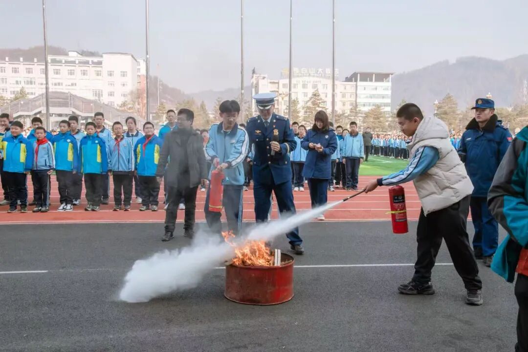 演练结束后,消防员对全校师生进行现场培训,针对灭火器使用提、拔、握、压四步法、拆解火灾报警、初期火情处置等关键步骤进行详细讲解。教师和学生代表上台进行实操,消防员及时纠正操作误区,强化“知”与“行”的结合。