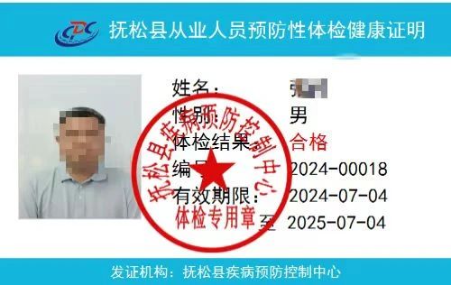 各经营业主、广大从业人员在微信搜索下载“抚松县疾病预防控制中心”小程序,完成健康体检5个工作日后,在小程序内输入本人姓名、身份证号查询体检结果,体检合格者可直接获取电子版《健康证明》。
