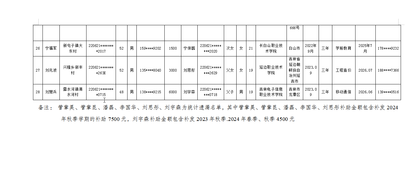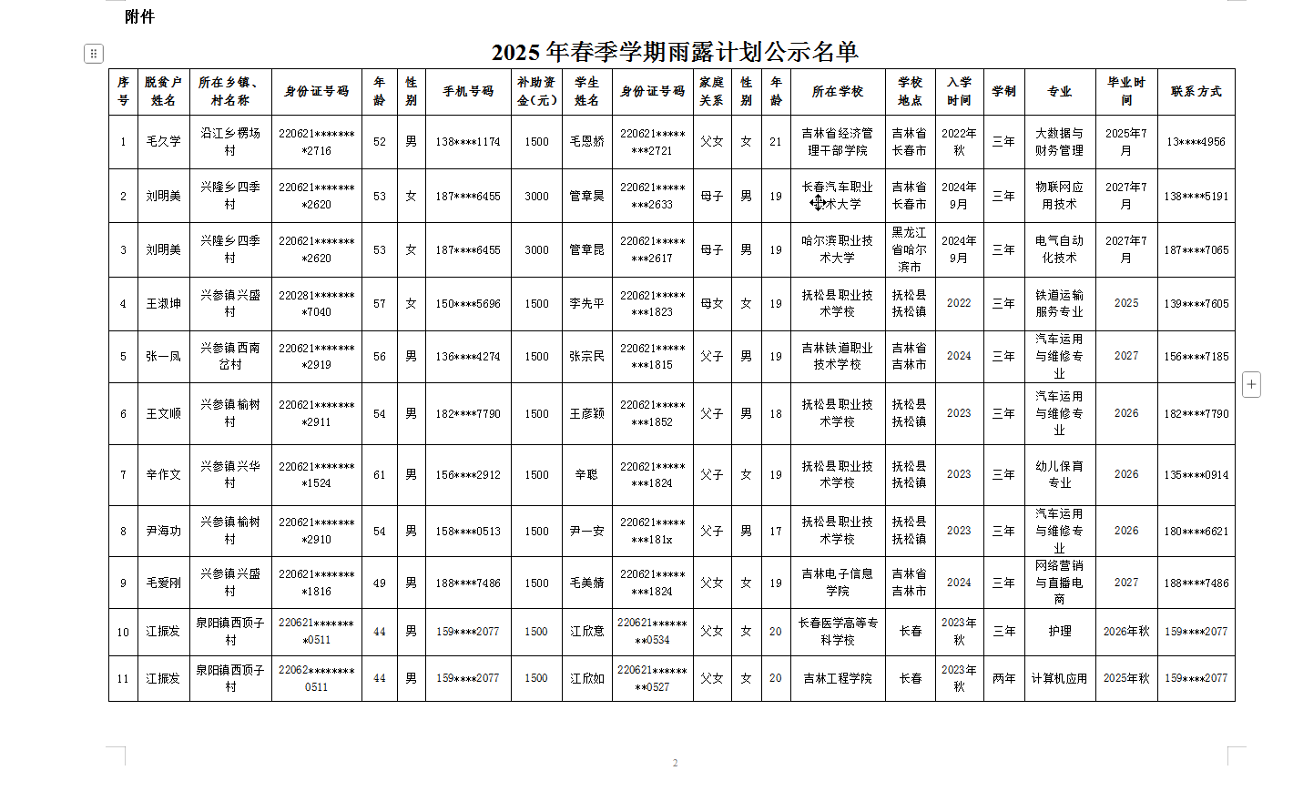 根据《国务院扶贫办 教育部 人力资源和社会保障部关于加强雨露计划支持农村贫困家庭新成长劳动力接受职业教育的意见》(国开办发[2015]19号)文件的相关工作要求,经按程序审核,我县符合“雨露计划”助学补助条件28人(见附件),现予以公告,公告期为10天,公示时间:2025年6月10日至2025年6月19日。